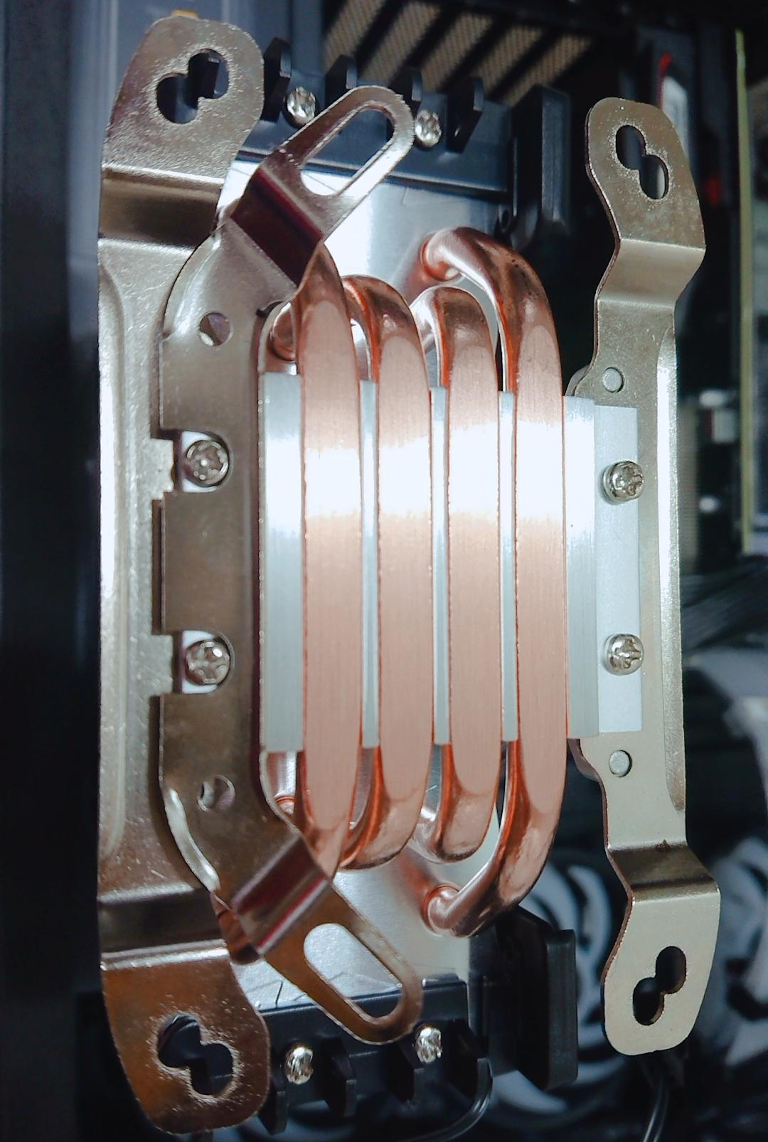 쿨러 하단의 나사 4개를 느슨하게 풀어서 AMD 브라켓을 사이에 꼽고 조여줍니다