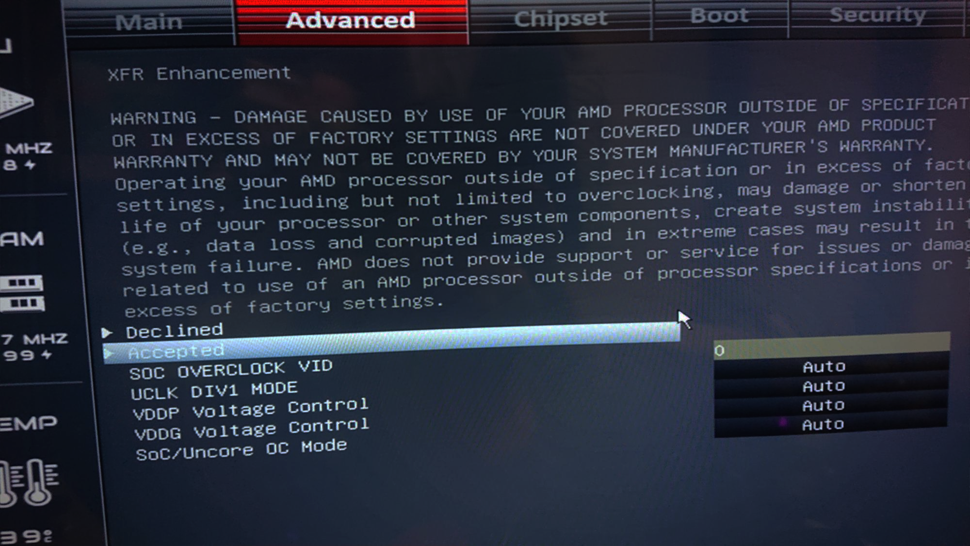 그리고 더 충격적인건 O.C탭, 그래도 전압조절하면 재부팅하라고하겠지?