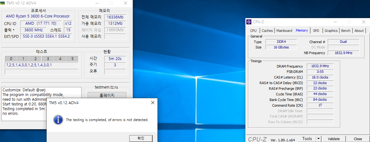 3666Mhz 18 - 22 - 22 - 22 - 44 1.35V로 스트레스안받고 안정화했습니다.