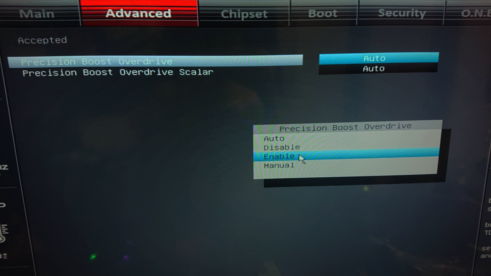 XFR ENHANCEMENT 선택 -> ACCEPTED -> PBO , ENABLE