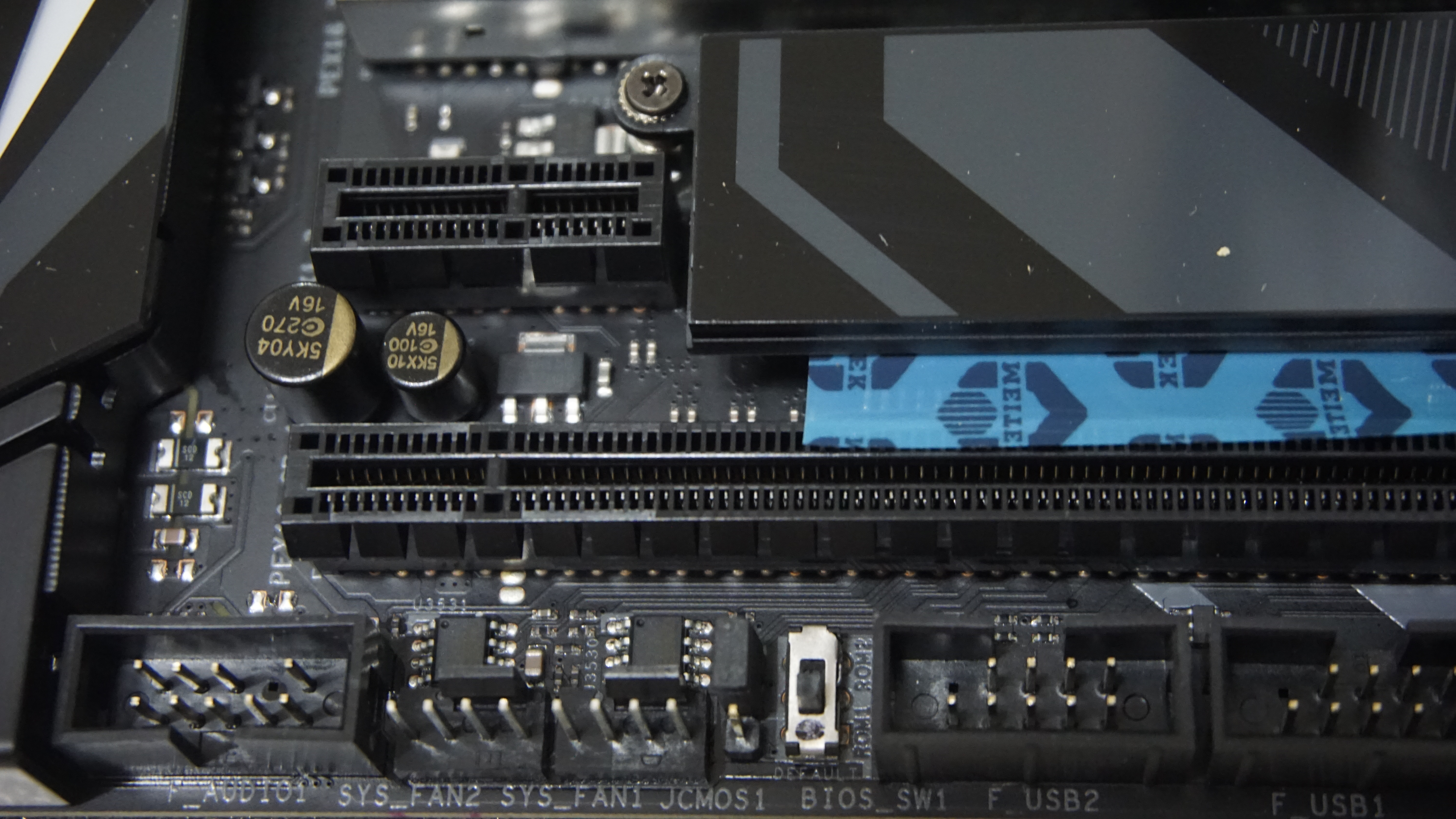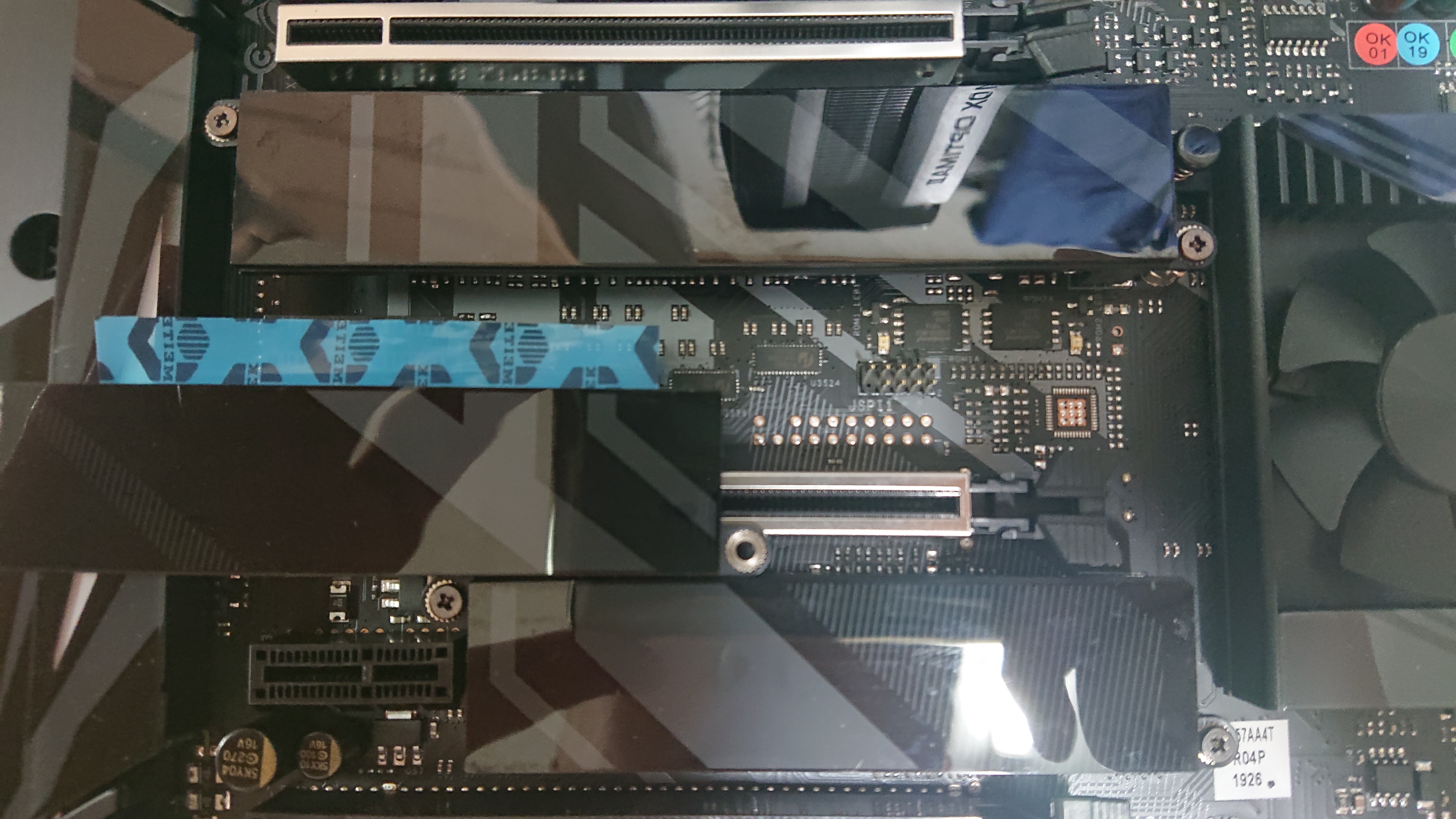 보이십니까?? M.2 방열판이 총 3개인데, 서멀테이프가 다붙어있고, 테이프막이 다저렇게 삐져나와서